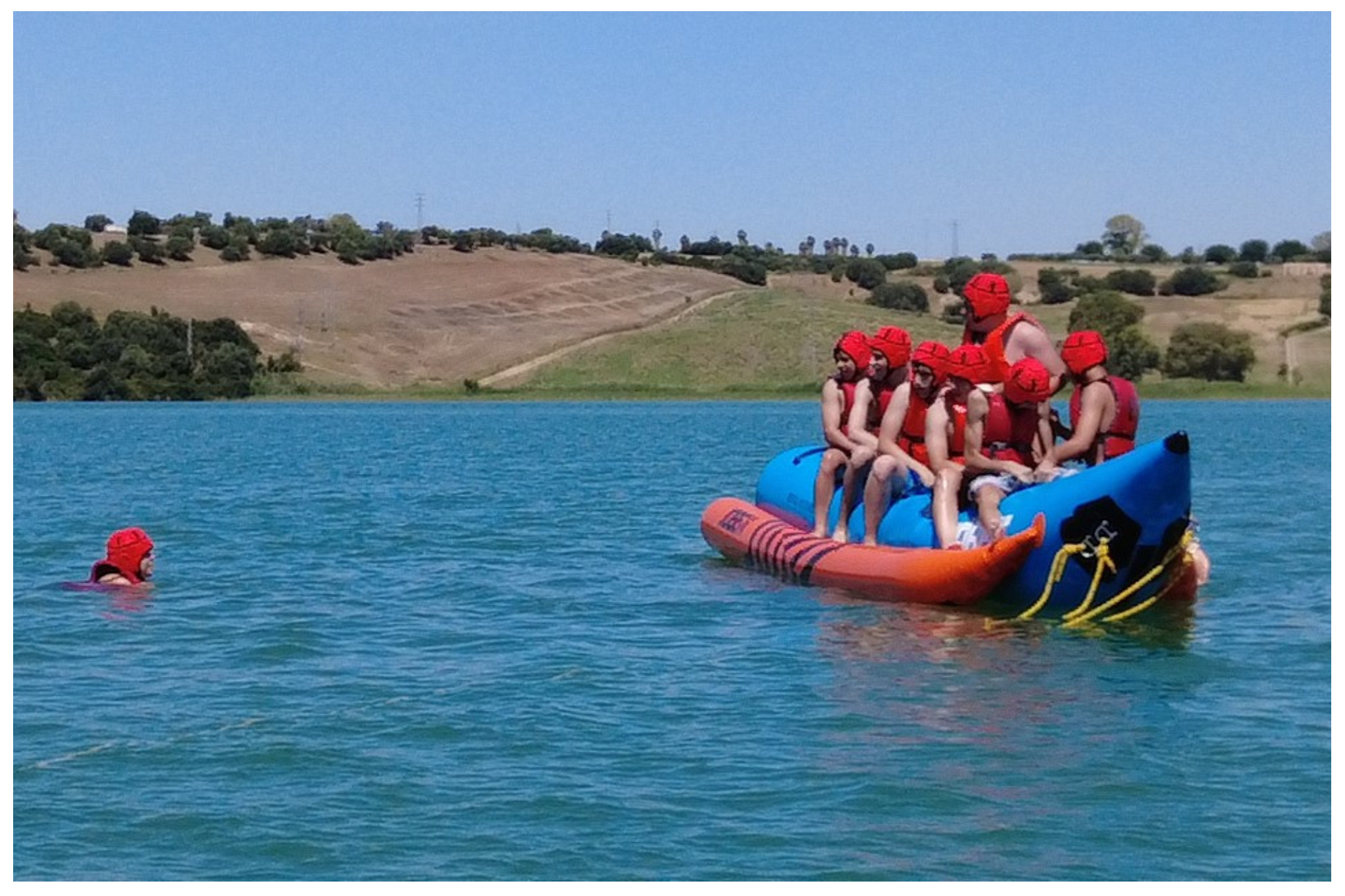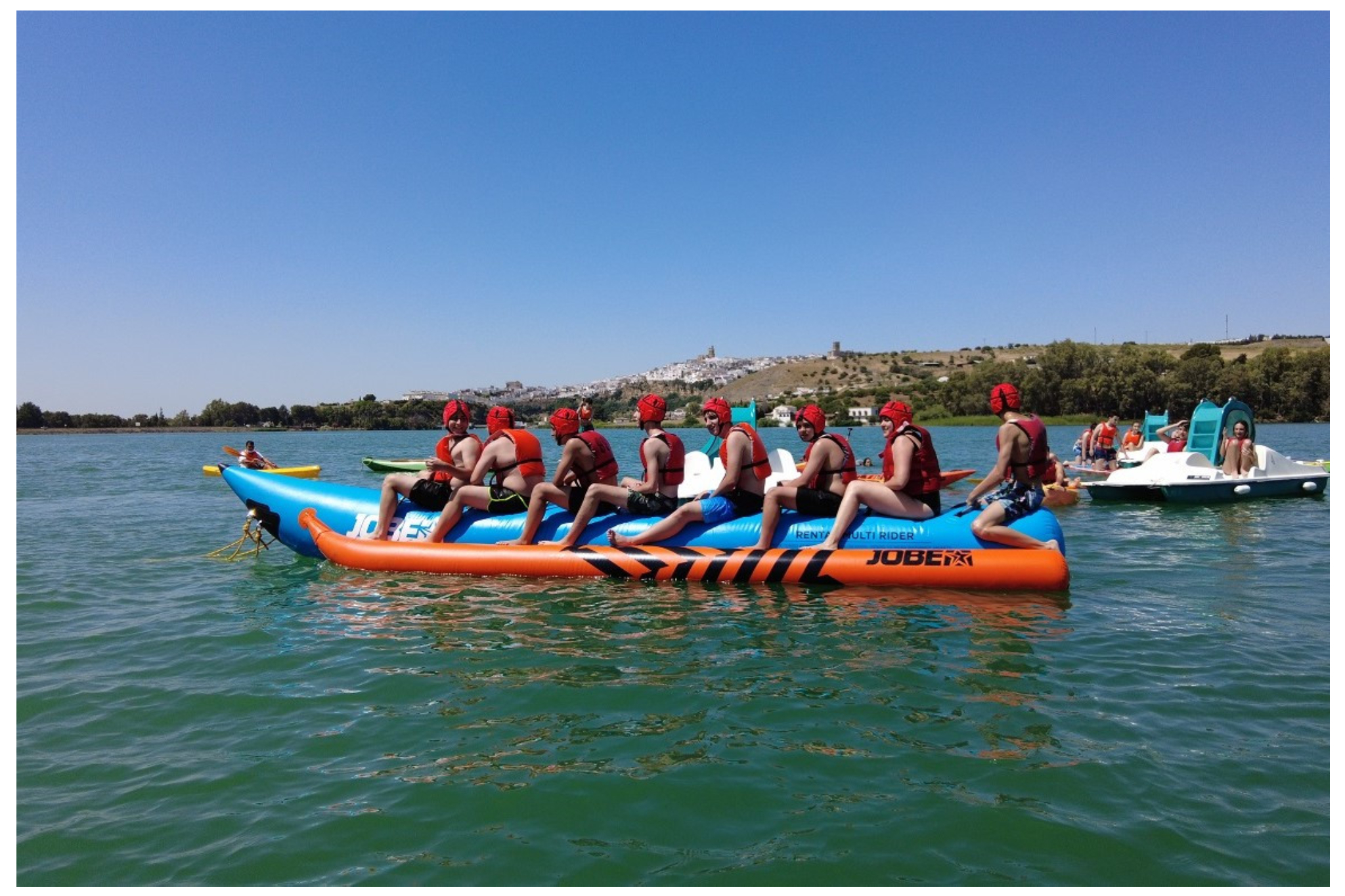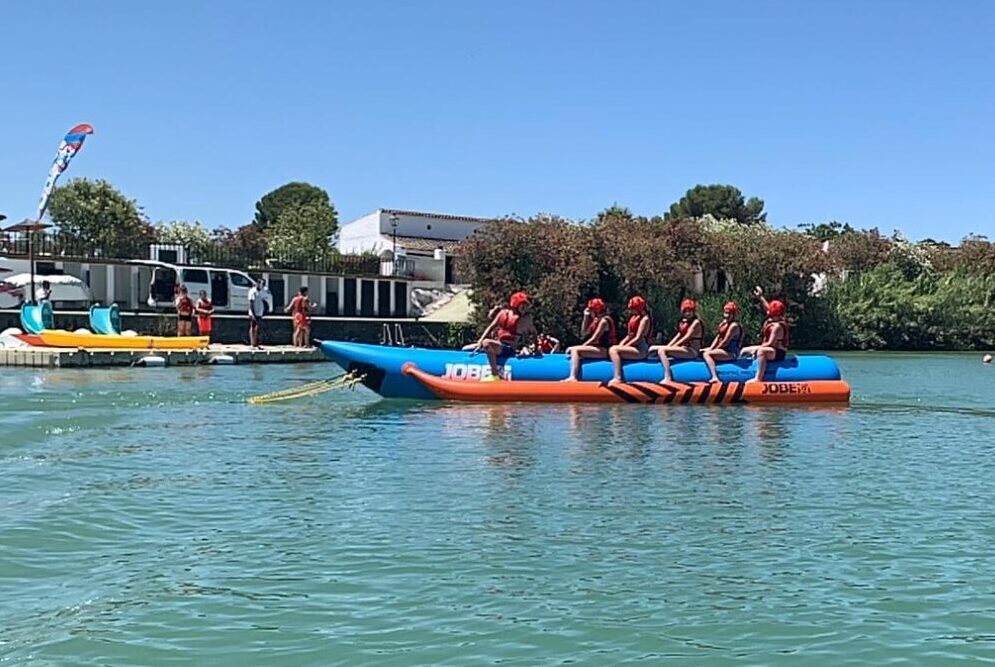 Nuestra última incorporación, la Banana. Si quieres pasar un rato divertido, con tu familia o grupo de amigos, esta es tú actividad. Déjate llevar por el embalse montado en nuestra Banana. Adrenalina, gritos, risas, baño, todo está garantizado.